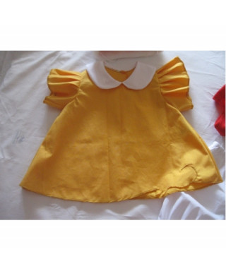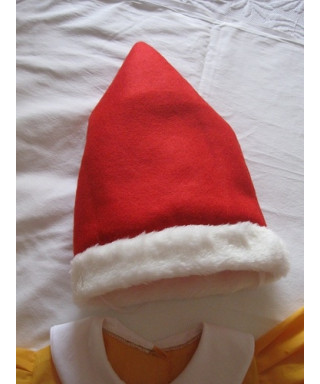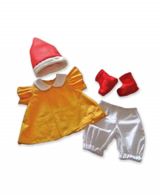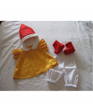 Composto da casacca gialla, pantaloni bianchi con elastico in vita, scarponcini e cappello rosso.